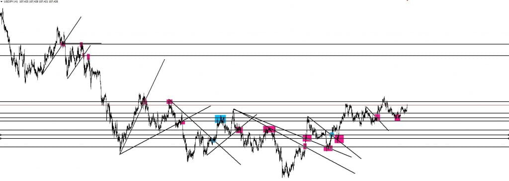 適当に切り上げ、切り下げライン引いてブレイクしたとこに水平ライン引いて水平ラインまで戻ってきたらポジれば割と勝つる